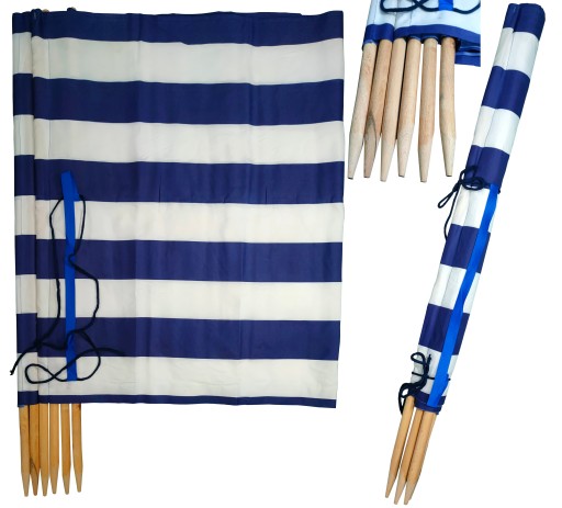 - Стовпи діаметром 20 мм забезпечують ідеальну підтримку та міцність у мінливих погодних умовах. Вони виготовлені з полірованої деревини бука, відомої своєю стійкістю до різних погодних умов. Загострені кінчики полегшують встромлення в пісок.