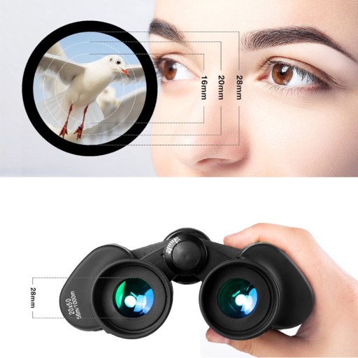 Бінокль оснащений об'єктивами діаметром 50 мм з фіксованим 20-кратним збільшенням.