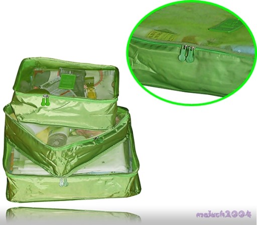 3 сумки "валіза" з ручкою, на блискавці. Вони мають прозору сітчасту кришку, що дозволяє легко пакувати, переглядати речі та переносити.