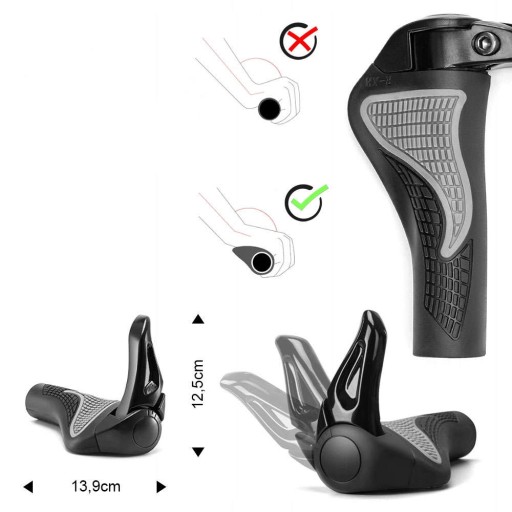 Грипси Велосипедні ручки Гумові велосипедні ручки керма Роги збільшують поверхню, на якій користувач тримає руки, що зменшує тиск на кисті та зап'ястки, захищаючи від болю. Виготовлений з термопластичної гуми.