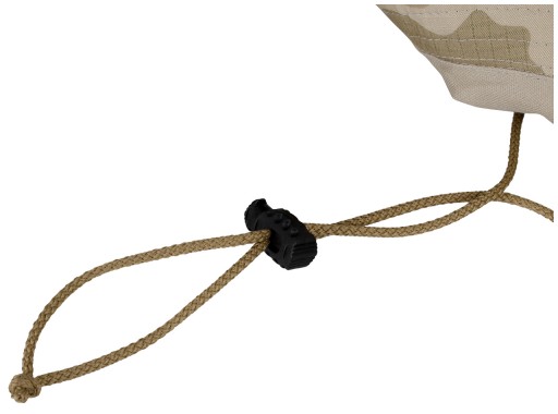 Шапка оснащена м'яким шнуром, що не викликає роздратування, зі стопором, який запобігає сповзанню шапки з голови. Мотузку також можна використовувати для кріплення краю вгору.