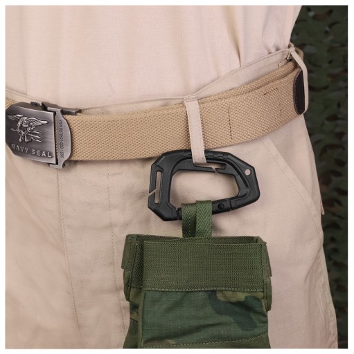Ідеально підходить для кріплення необхідного спорядження, тактичних ременів або як брелок. Конструкція карабіна гранично проста і типова для цього виду аксесуарів - він уніфікований, з рухомим курком.