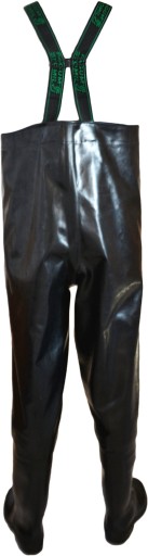 Вейдерси Виготовлені повністю з гуми, ідеально підходять для риболовлі та різних робіт, що виконуються в складних умовах. Польський продукт.