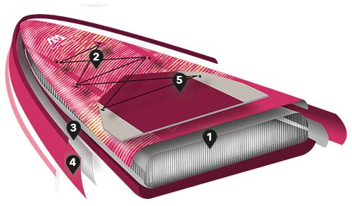 • Технологія Drop Stitch робить дошку дуже легкою, але довговічною та жорсткою.