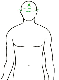 - А. Окружність голови - вимірюємо окружність голови через вуха.