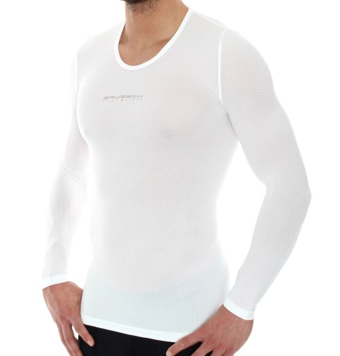 Футболка-основа з довгим рукавом виготовлена за безшовною технологією з тонкої дихаючої тканини. Трикотаж, який прилягає до тіла, і 3D-структура створюють повітряні канали. Влітку вони посилюють вентиляцію організму, а взимку збирають тепле повітря, захищаючи від переохолодження. Конструкція на основі тривимірної сітчастої моделі в кілька разів збільшує поверхню збору вологи. Легка вага, щільний крій, м'яка тканина не сковує рухів і захищає від потертостей. Тканина має антибактеріальні та протиалергічні властивості. Цілорічний продукт, рекомендований для різних видів діяльності як базовий шар.