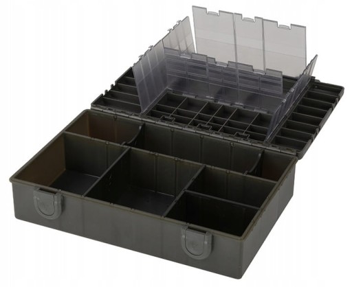 Нижня частина коробки для снастей була розроблена для розміщення всіх нових стандартних і XL коробок з відділеннями, регульованої коробки з відділеннями, коробки з гачками та блискучих стандартних і XL стійки Leader. Коробка має 3 довгі розділювачі, 2 короткі роздільники та 1 середній роздільник, який можна зняти та навести порядок усередині коробки, дозволяючи налаштувати її відповідно до бажаної конфігурації. Місця для вирізів сепаратора були ретельно розміщені, щоб найкраще використовувати доступний простір. Це не дозволить внутрішнім ящикам бовтатися в зайвому просторі та забезпечить ефективний захист усіх кінцевих аксесуарів. У цю коробку ідеально поміститься все - від інструментів для поводків і стандартних котушок для матеріалів для лідерів, до більших котушок для лідерів.