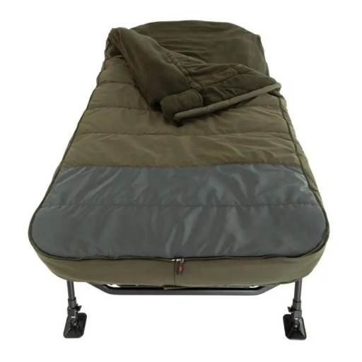 Широке і зручне ліжко, яке буде використовуватися цілий рік. Усе це завдяки 7 різним конфігураціям: від легкої та тонкої простирадла для літніх ночей до 5-сезонної системи для холодних місяців із температурою нижче нуля. Вісім ніжок і міцна алюмінієва рама забезпечують максимальну стійкість. До ліжка входить повністю знімний поролоновий матрац для додаткового комфорту.