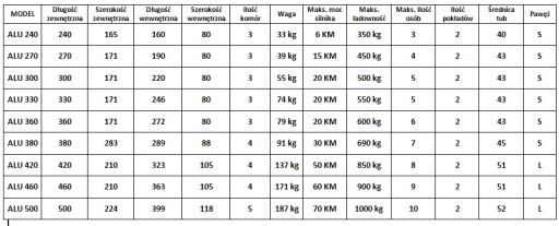 Серія ALU RIB є абсолютно новою на польському ринку. Корпус виготовлений з алюмінію товщиною 3 мм, покритий порошковою фарбою з високою стійкістю до подряпин, труби стандартно виготовлені з тришарового ПВХ MEHLER товщиною 0,9 мм, щільністю 1100 U/m², укріплені всередині поліефірною сіткою, за бажанням. з HYPALON. Ребра випускається в світло-сірому - темно-сірому і червоному кольорах.
