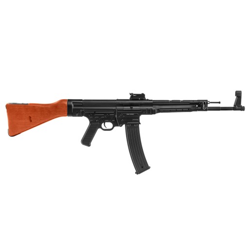 Електрична, ліцензована виробником зброї Schmeisser, копія історичної автоматичної гвинтівки MP44. Зроблено Cybergun. Це точна копія німецької гвинтівки, виготовленої під час Другої світової війни. Виготовляється з матеріалів, що відповідають легкозаймистим оригіналам. Корпус і внутрішні частини виготовлені з металу. Ложа виготовлена з дерева і ідентична збройовому аналогу. Всередині навіть є місце для флакону мастила.