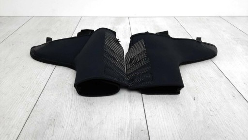 Модель виготовлена з неопрену (4 мм), який дуже гнучкий, що значно полегшує використання протекторів і забезпечує хороше прилягання до взуття. Використаний матеріал, а також спеціальні шви водонепроникні. Крім того, модель вітрозахисна.