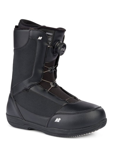 Система шнурівки Fast-In прилягає до гомілки та стопи, а вставка Comfort Foam EVA швидко адаптується до індивідуальної форми стопи. Підкладка черевиків для сноуборду K2 Market також має внутрішні J-образні дужки, призначені для обіймання та підтримки щиколоток для індивідуальної посадки.