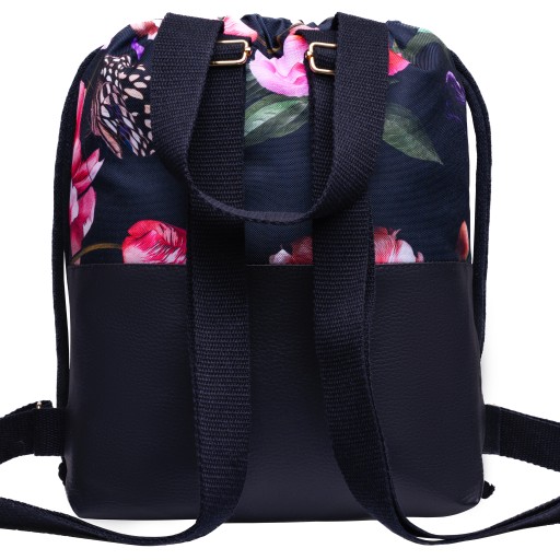 - Переваги: водонепроникний поліестер преміум-класу з Оксфордським сертифікатом, основа рюкзака - екошкіра, широка куліска, регульовані бавовняні лямки з золотистими пряжками, ручки для носіння рюкзака як сумки, декоративний бант.