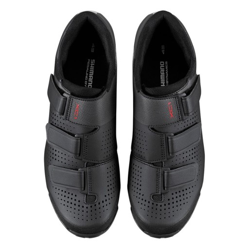 Shimano SH XC100 це високоефективне взуття для гонок XC MTB, яке гарантує високу якість і чудовий дизайн. Завдяки цілісній конструкції верху кількість шарів, що перекриваються, значно менша, що забезпечує ідеальну посадку та малу вагу. Покриття з синтетичної шкіри з сітчастою структурою ідеально прилягає до стопи. Завдяки легкій нейлоновій підошві, посиленій скловолокном, передача потужності ще вище, а її гумова частина з гоночним протектором забезпечує стабільний контакт з педалями та зчеплення під час ходьби. Розташований всередину ремінь зменшує навантаження на найвищу точку тильної частини стопи та забезпечує ідеальне регулювання.