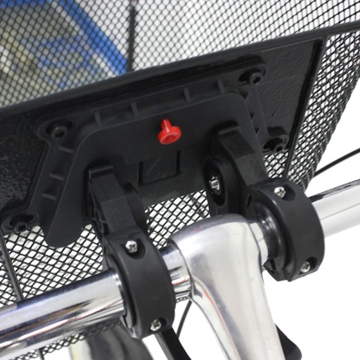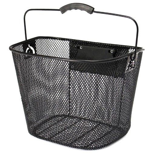 - Кошик для велосипеда з чорної металевої сітки. Кошик кріпиться на кермо за допомогою швидкомонтованого тримача типу "CLICK".