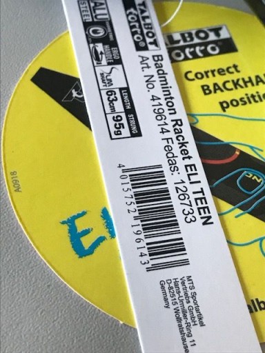 Ракетка для бадмінтону Eli Teen Talbot Torro забезпечить приємну гру найменшим.
