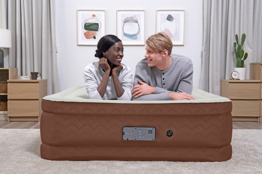 Проданий продукт характеризується двома насосами та надміцним матеріалом ToughGuard™, який у 150 разів стійкіший до стирання, на 92% до розтягування та на 75% до проколів, ніж ПВХ. Ми керуємо ним за допомогою зрозумілої панелі керування. Просто натисніть одну кнопку, і все готово - матрац надувається за 3 хвилини. Ця система контролює надування, випускання та повторне надування повітря під час сну. Завдяки трьом рівням жорсткості ви можете налаштувати матрац відповідно до своїх уподобань. Виробник використав в матраці хвилеподібну конструкцію. Світлодіодне підсвічування дозволяє керувати в темній кімнаті. USB-роз'єм дозволить підключити телефон або планшет для зарядки. Флокована поверхня забезпечить комфорт сну. Бічні грані захистять від можливого падіння. Матрац має клапан швидкого спуску повітря. Вбудована технологія Ultra-Fresh запобігає розвитку бактерій або цвілі на поверхні.