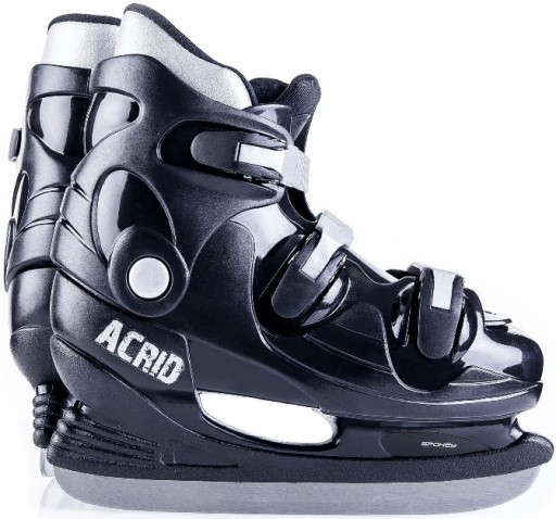 СКІД: Попередньо заточений, виготовлений з нержавіючої сталі підвищеної твердості, що продовжує термін його служби. Хокейний полоз, який використовується в цих ковзанах, забезпечує більш швидке катання, кращу маневреність і швидке і точне гальмування.