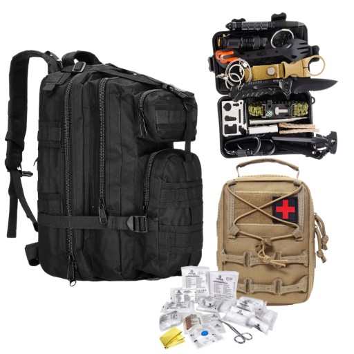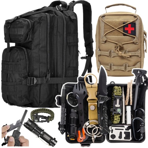 ЧОРНИЙ РЮКЗАК 35 Л ➕ ПЕРШИЙ НАБІР З 40 СПОРЯДЖЕННЯ ➕ НАБІР ДЛЯ ВИЖИВАННЯ 32 в 1