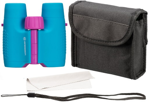 У комплект обладнання входить чохол із застібкою-липучкою, що забезпечує хороший захист обладнання в польових умовах. Чохол кріпиться на поясі, щоб ви могли швидко дістати бінокль. Додатково в комплект входить ремінець для кріплення бінокля на зап'ясті. Якщо лінзи забрудниться, їх можна швидко очистити серветкою, що входить у комплект. Погляньте на природу ближче з дитячим біноклем BRESSER Junior 6x21!