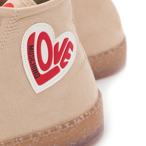 SNEAKERD.ECO30 SUEDE PL BEIGE – високі кросівки прямо від бренду LOVE MOSCHINO, які в майбутньому весняному сезоні знайдуться в гардеробі кожної жінки. Ця нестандартна модель відрізняється не тільки дівочим поєднанням кольорів, але й увагою до деталей. Верх з високоякісного матеріалу доповнений молодіжною нашивкою з помітним логотипом бренду. Також шарму додають сердечка, розміщені на зовнішній частині язика. Все це доповнено подвійною підошвою. Ця модель має додатковий прозорий шар з видимими вбудованими елементами.