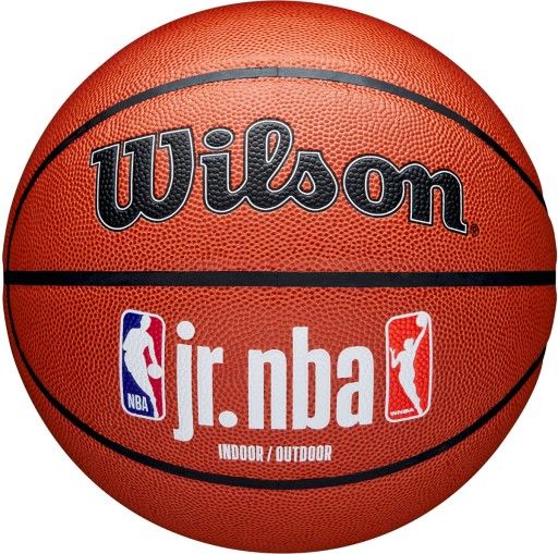 Композитний шкіряний баскетбольний м'яч Wilson Jr NBA FAM - це чудовий м'яч для початку вашої пригоди з баскетболом, який підходить для використання під час тренувань, уроків фізкультури, а також під час розважальних ігор.