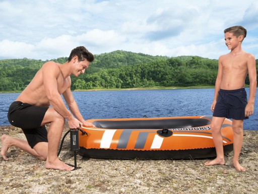Перевагою цього виробу є те, що кожен рух насоса (вгору-вниз) нагнітає повітря в надуваний предмет, що дозволяє швидше накачати басейн або матрац.