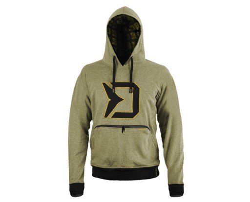 Delphin RAWER ONE TacklePocket — це серія стильних худі, які додають новий вимір комфорту. Вони доступні в темно-зеленому кольорі в поєднанні з чорними манжетами на талії та рукавах. Відмінною рисою серії, безумовно, стане простора подвійна кишеня на блискавці на передній частині TacklePocket, яка була розроблена, щоб дозволити рибалці зручно розмістити все необхідне під рукою. Висока якість цього виробу також підтверджується використанням верхніх блискавок YKK. Кишені закриваються на блискавку з логотипом Delphin. Там, де закінчуються обидва кінці блискавки, з обох боків ми знаходимо додатковий простір для ваших рук, де ви можете зігріти їх, коли холодно. На лицьовій стороні є великий логотип Delphin зі смаком оздоблений зеленим кольором. З правого боку такий же маленький логотип. Капюшон зсередини оброблений чорною тканиною з друкованим логотипом Delphin. Капюшон можна легко зав'язати чорною мотузкою з логотипом Delphin RAWER на її кінцях. Той самий логотип збільшений у нижньому лівому краї.