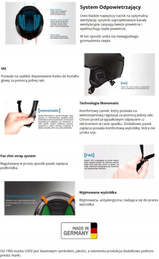 Uvex – це сімейна компанія з Німеччини. Вже кілька десятиліть займається виробництвом висококласного спортивного обладнання. На початку компанія виробляла лише лижні окуляри. Згодом асортимент поповнився лижними та велосипедними шоломами, окулярами та протекторами. Всі товари бренду відрізняються високою якістю і великою увагою до найдрібніших деталей. Кожен продукт бренду Uvex проходить серію складних випробувань, перш ніж він стане доступним для споживача.