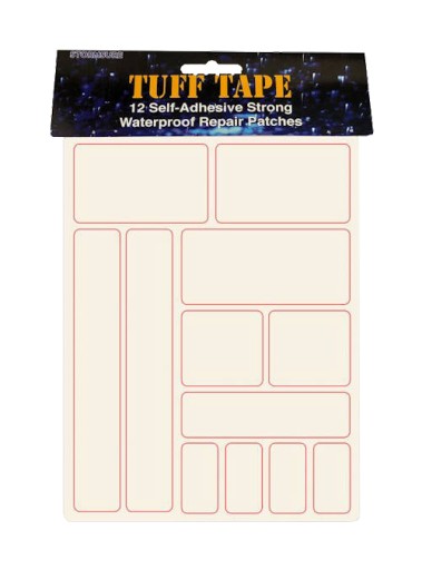 Самоклеюча стрічка TUFF TAPE призначена для швидкого ремонту порваних наметів, рюкзаків, водонепроникного одягу, басейнів, надувних матраців, надувних каяків, взуття, болотів, водонепроникних сумок, вітрил, шкіряного одягу, кабріолетів, вікон садових наметів, тросів, камери та багато іншого. Стрічка приклеюється до будь-якої відносно гладкої поверхні і тримається дуже міцно. Клей стійкий до води, екстремальних температур і сонця. Стрічка склеює та герметизує ПВХ, фольгу, скло, пластик, метал, шкіру, гуму, нейлон, поліестер тощо.