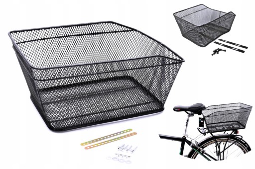 Задня кошик для велосипеда KANDS прикручена до стійки. Форма кошика прямокутна, розрізана з боку сідла. Кошик з щільної металевої сітки. Ідеально підходить для людей, які хочуть постійно встановити кошик для велосипеда.