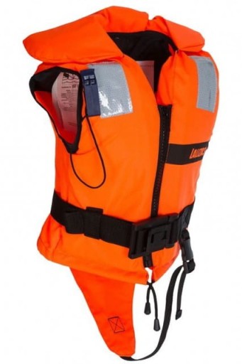 Жилет рятувальний 100N для людей вагою 15-30 кг, обхватом грудей 60-70 см, оснащений двома видами застібок - пряжкою і блискавкою. Додатковий захист забезпечує промежинний ремінь, який запобігає вислизанню жилета, і комір, який утримує голову над водою. Відповідне розташування матеріалу плавучості гарантує, що людина залишається у вертикальному положенні. Жилет додатково оснащений свистком і відбивачами SOLAS.