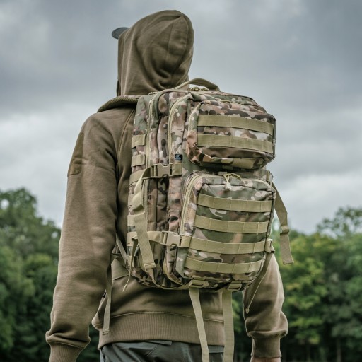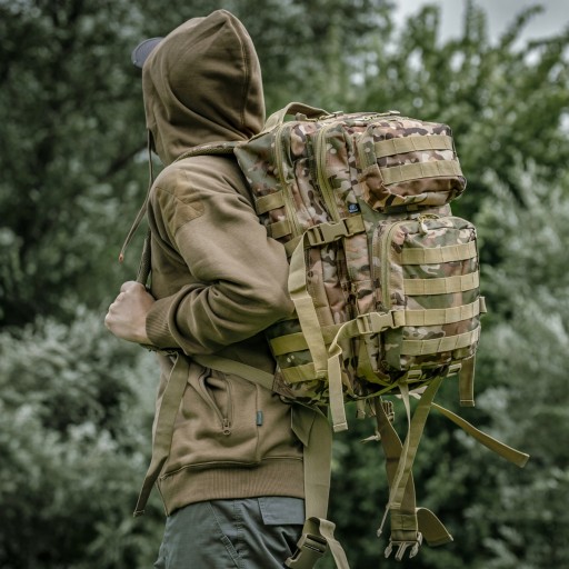 Тактичний рюкзак об'ємом 40 літрів - цей розмір ідеально підходить для повсякденного використання або для 3-денних походів. Він виготовлений з міцного матеріалу, стійкого до розривів і стирання.