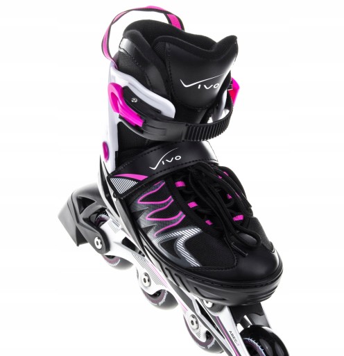 Роликові ковзани Vivo Viki - це якісні регульовані роликові ковзани - роликові ковзани для кожного. Стійка конструкція і зручна оббивка підвищують комфорт і безпеку під час використання. У моделі Viki використовуються підшипники ABEC-7, які характеризуються низьким опором коченню, що забезпечує легке досягнення більш високих швидкостей. Ковзани мають застібку на липучці та один ремінь із застібкою Auto Lock і шнурівкою внизу.