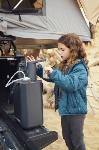 - Розроблений для легкого переміщення з автомобіля в кемпер, він поміщається в просторі за колісною аркою автомобіля