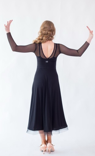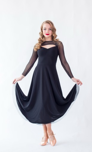 Плаття СТАНДАРТ арт. 003 - елегантне стандартне плаття, на тонких бретельках і топом у вигляді болеро з довгими рукавами з еластичної сітки. Низ сукні зшитий по колу і оброблений відкритою регілінією, яка чудово виглядає під час танцю. Сукня виготовлена з якісної приємної до тіла тканини.