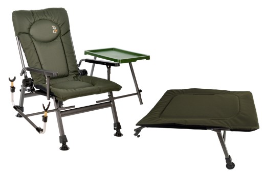 Він має зручний підголівник і підлокітники та регульовані ніжки, тому його можна розмістити на нерівній місцевості.