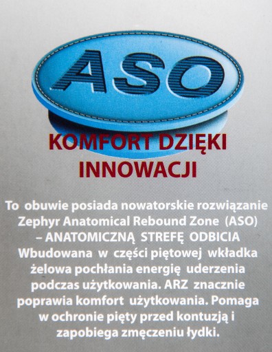 Взуття має шкіряний верх, область щиколотки виконана з Cordura, що забезпечує кращу вентиляцію. Ергономічний дизайн взуття гарантує хорошу посадку та високий комфорт використання. Додатково черевики оснащені гелевою вставкою ASO (Anatomical Rebound Zone), яка поглинає енергію удару, і амортизаційною зоною в області п'яти.