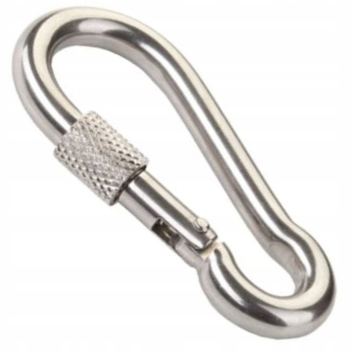 Карабін для легкого і швидкого застібання. Виріб з тривалим терміном служби та високою навантажувальною здатністю. Найчастіше використовується як підвісний або сполучний елемент для мотузок, ланцюгів і стрічок.