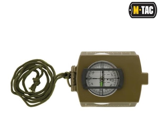 Компас M-Tac на складній рамі (кришка з прицілом і підставкою, на якій обертається капсуль з циферблатом і стрілкою). Рамка використовується для встановлення азимута. Азимут беремо так: направляємо довгу сторону компаса на орієнтир, повертаємо капсуль так, щоб північ стрілки збігався зі знаком півночі на корпусі компаса. За виїмкою на кінці рамки, зверненою до точки відліку, зчитуємо числове значення азимута.