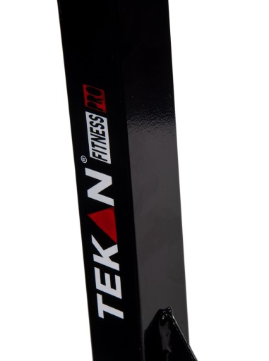 - Чорна обробка штанги з червоними пінами виглядає чудово, а великий логотип польського бренду TEKAN FITNESS PRO завершує вражаючий вигляд всієї конструкції.