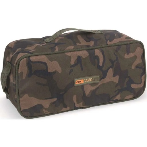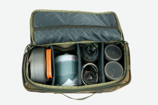 Сумка з такими ж розмірами, як і Camolite Standard Storage Bag, адаптована до обох моделей тачок Explorer Barrow. Містить жорсткі внутрішні роздільники, прикріплені за допомогою липучок. У набір входять 2 керамічні кухлі Voyager, 2 великі та 2 маленькі контейнери кольору хакі, що загвинчуються (ідеально підходять для чаю, цукру та кави), а також 1 чайна ложка з нержавіючої сталі. У набір також входить алюмінієва пляшка 250 мл з логотипом Fox і термосумка (ідеальна для зберігання молока). Крім того, всередині сумки є місце для чайника, пальника та газового балона. Це сумка, тому з боків і зверху були ручки для транспортування, а також міцні подвійні блискавки на 8 мм.