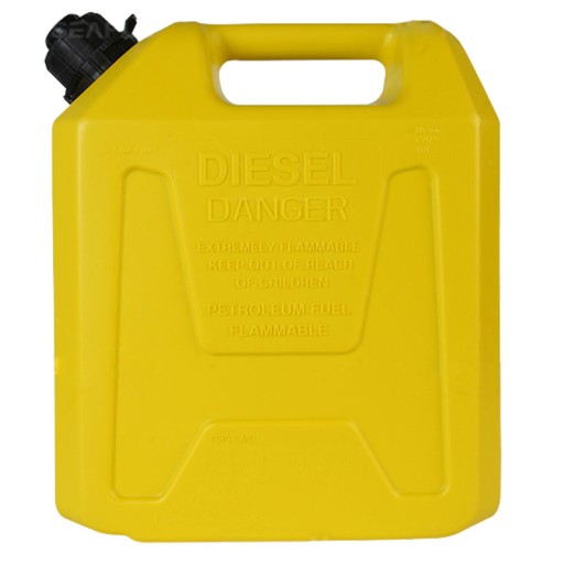 Якісна каністра для масла або бензину з ПВХ. У комплекті з самовентилюючою лійкою, яку можна зберігати всередині або зовні каністри. Кінець воронки закінчується гачками, щоб підтримувати її на краю заливної горловини. Паливо починає текти при натисканні на воронку, таке рішення забезпечує комфортну заправку і виключає ризик розливу палива. Призначений для автомобільних палив (бензин, дизель), розріджувачів на основі бензину та нафтових масел. Також доступний у версіях 5 та 20 літрів. Жовтого кольору з позначенням типу дизельного палива.