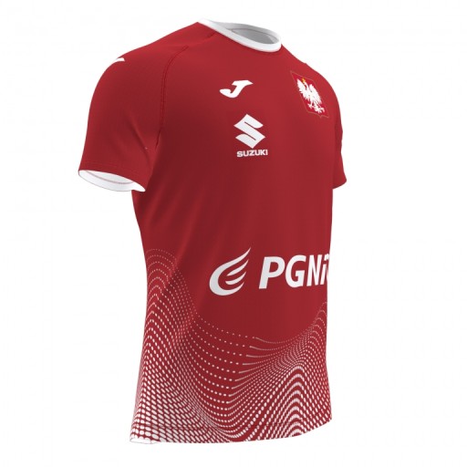 Joma створила футболку, яка характеризується сублімованим дизайном, який підносить традиційні кольори польського прапора. На верхній частині спини виділяється деталь польського прапора.