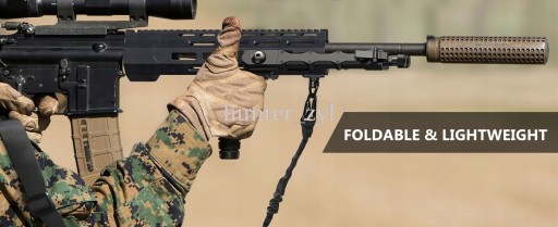- Виготовлена із загартованої сталі та алюмінію з чорним анодованим покриттям із нержавіючої сталі, сошка гвинтівки міцна та легка.