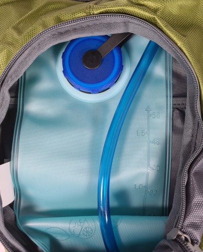 - Рюкзак з системою гідратації має внутрішній мішок для рідини об'ємом 1,5 л