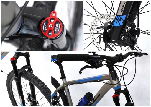 - В основі конструкції лежить алюмінієва рама і підвісна алюмінієва вилка з ходовим замком
