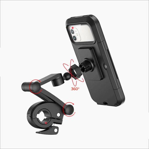 Тримач телефону був спеціально підготовлений для людей, які люблять подорожувати в будь-яких умовах. Закрита на 360° конструкція кришки повністю захищає телефон від дощу, снігу, пилу та бруду. Завдяки цьому цей тримач безсумнівно безпечніший, ніж стандартні тримачі для велосипеда, і неперевершено захистить ваш телефон у найекстремальніших дорожніх умовах.