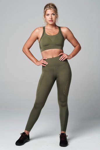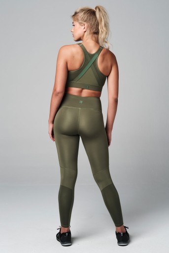 Спортивний бюстгальтер покликаний забезпечувати нам повний комфорт під час тренувань, піклуватися про наш бюст, а також вписуватися в наш спортивний стиль. Цей бюстгальтер виконає всі ці функції! Він виготовлений із матеріалу, що характеризується високою компресією: він повністю еластичний і водночас чудово відводить вологу, а ви знаєте, як це важливо, коли ви викладаєтеся під час тренування! Також зверніть увагу на ще одне: цей спортивний бюстгальтер пошитий так, що ви зможете раз і назавжди забути про будь-які потертості! І ще: такий крій підтримає вас у досягненні ваших спортивних цілей, незалежно від того, чи є у вас більші або менші груди. Це дуже важливо! Гарна і правильна підтримка грудей під час фізичних навантажень є пріоритетом: таким чином ми дбаємо не лише про комфорт, а й про своє здоров'я! Цей спортивний бюстгальтер досить приталений: він має низький виріз і закриту спину. Бретелі широкі, регулюються. На спинці бюстгальтера лямки перехрещуються по діагоналі на матеріалі, що додатково зміцнює структуру бюстгальтера. Не забули і про деталі: спереду, між грудьми, є перфорація, яка покращить вентиляцію та збереже приємну прохолоду, а ззаду кілька діагональних смужок на лямках та маленький логотип. латка на нижній гумці. Вся справа складається з двох відтінків оливкового кольору. Подбайте про свій комфорт і здоров'я під час тренувань. Ця модель добре підійде під час різних фізичних навантажень: в ній можна бігати, займатися йогою, займатися фітнесом або кросфітом. Він завжди виконає своє призначення!
