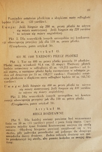 : Збірник легкоатлетичних правил Польської легкоатлетичної асоціації, чинний станом на 1948 рік, опублікований у кишеньковому форматі. Він містить вступ Walenty Foryś - тодішнього президента PZLA, а також повні правила проведення всіх легкоатлетичних змагань, включаючи: вимірювання дистанцій і часу, суддівська бригада, вимоги до спорядження, розміри доріжки, зони метання та трампліну тощо. У книзі також представлені таблиці балів для пауерліфтингу та п'ятиборства для жінок.